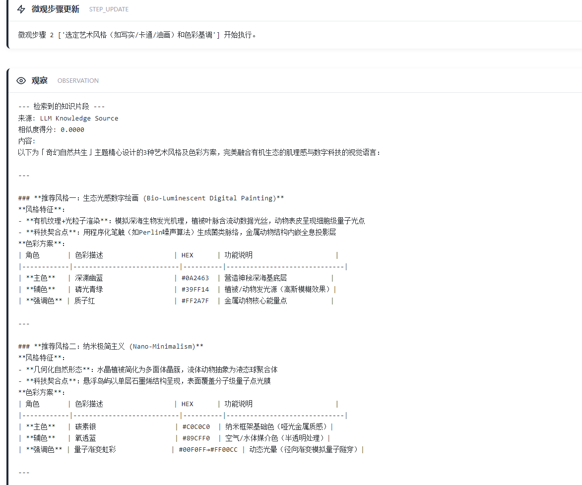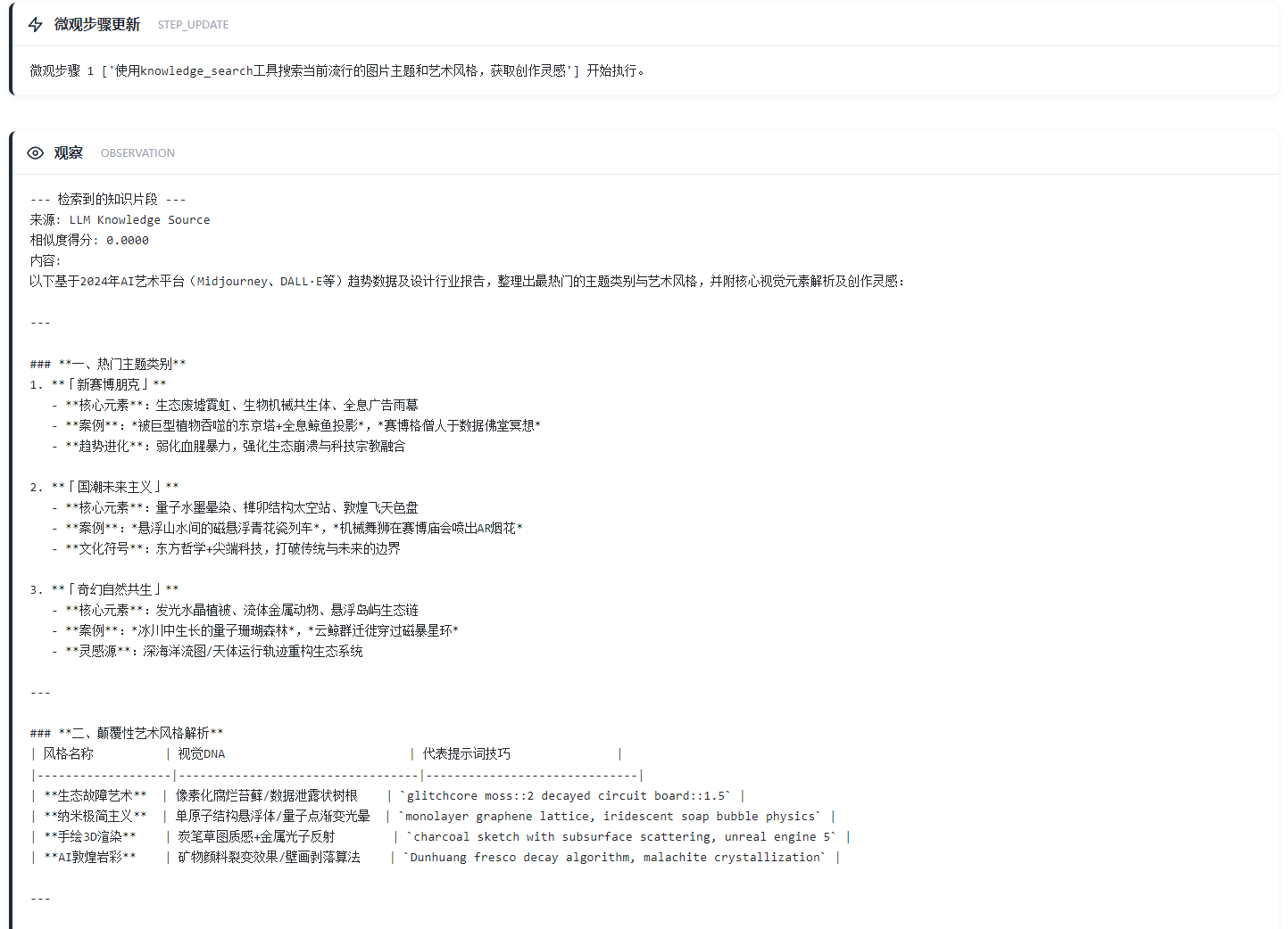 1 ['使用knowledge_search工具搜索当前流行的图片主题和艺术风格,获取创作灵感'] 开始执行。