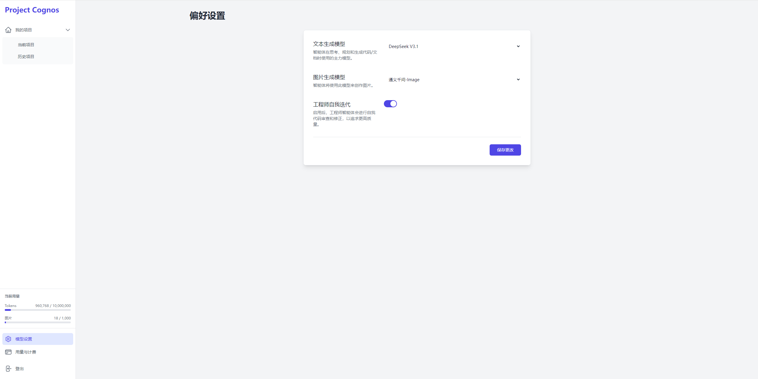 商业级平台特性: 提供用户认证、模型配置、用量统计和支付入口,增加产品的商业化运营基础。