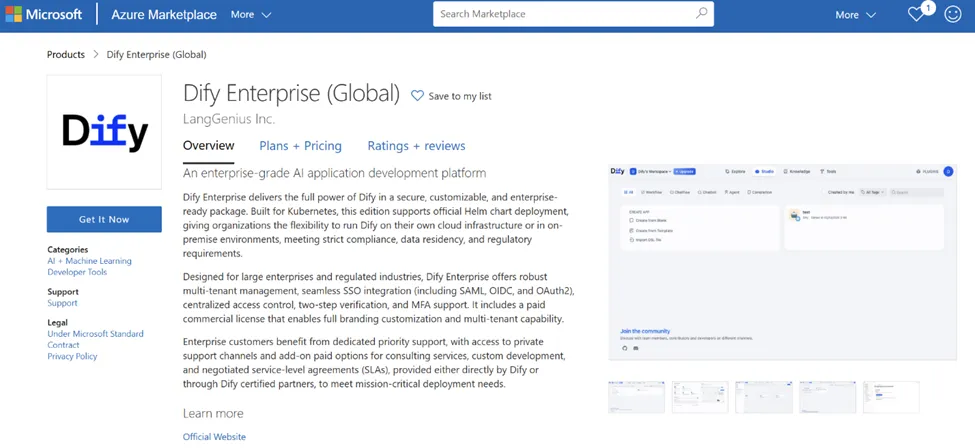 Dify 入驻微软全球云市场 Microsoft Azure Marketplace,全面开启商业化加速通道