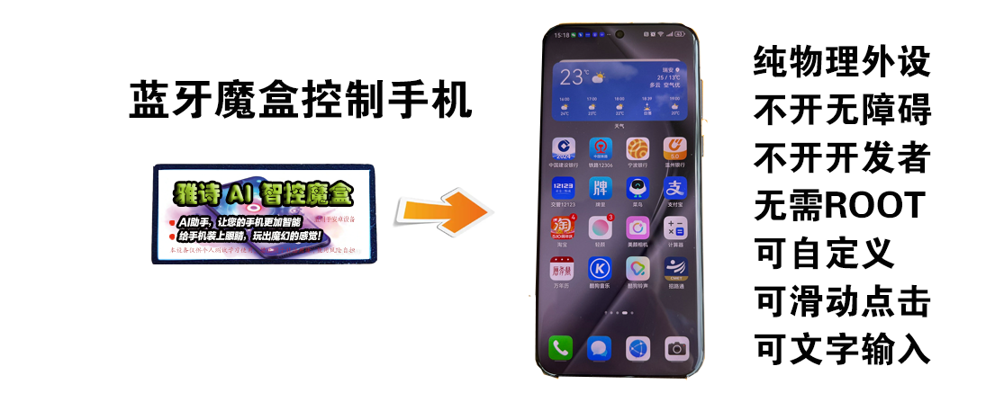 开发出来的智能体脚本,分两种运行模式,一种是在ROOT环境下运行,另一种不需要ROOT,但需要配合一个蓝牙智能魔盒,纯物理外设。