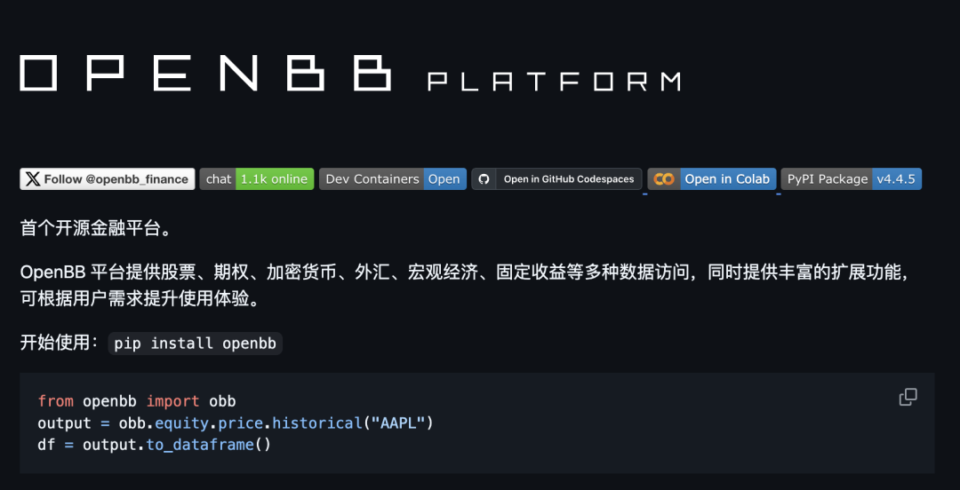 开源地址:https://github.com/OpenBB-finance/OpenBB
