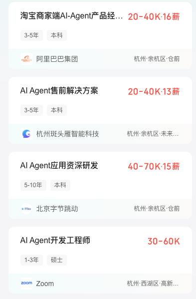 2025 年 Q1 招聘市场,带「AI Agent」经验标签的简历,面试邀约率高出普通简历 3.2 倍。结束后,我刷了刷猎聘和拉钩,也跟很多朋友聊了聊,发现确实是这样: