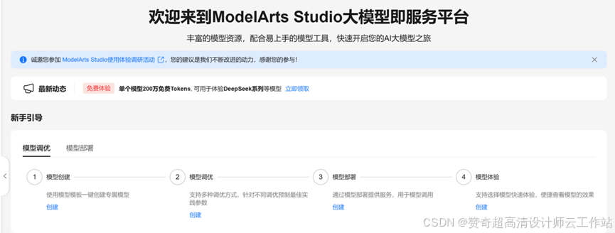 ModelArts Studio大模型即服务平台使用流程:模型订阅-模型调优-模型部署-模型体验。一站式模型制作部署,打造您的国产化私人AI管家。