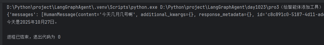 此案例实现一个能回答 "今天日期" 的智能体,当用户询问日期时,智能体自动调用get_current_date工具:
