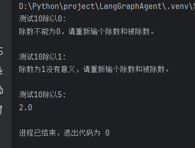 工具调用可能出现异常(如除法运算中除数为 0),若不处理会导致智能体崩溃。LangGraph 提供ToolNode与自定义错误处理函数,确保智能体在出错时能友好反馈。
