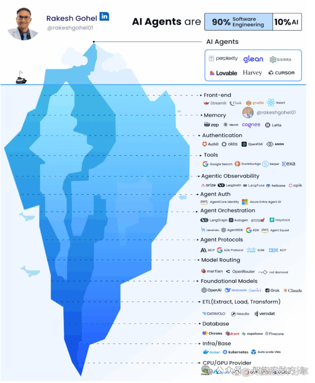 这一观点最早由 Rakesh Gohel 在其著名的AI Agent冰山模型中提出,并在业内引发了广泛共鸣。本文将深入解析这背后的逻辑。