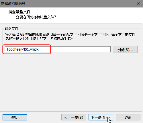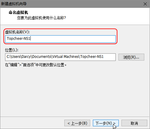 定义虚拟机名字为‘Topcheer-NS1’