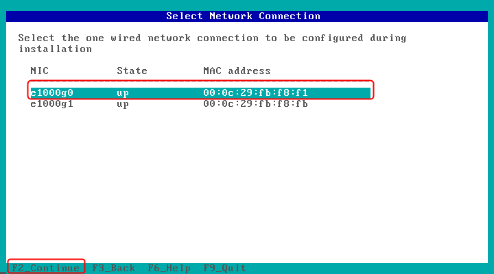 选择第一个网卡(桥接的那个)并按F2下一步