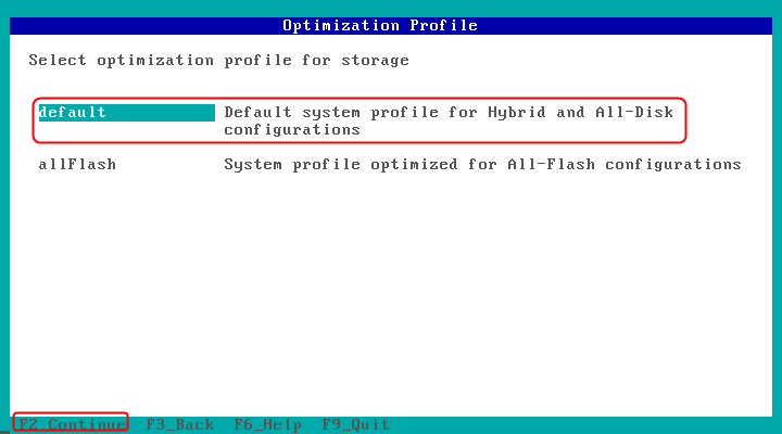 由于为实验环境,不是全闪存,故选择default,F2下一步