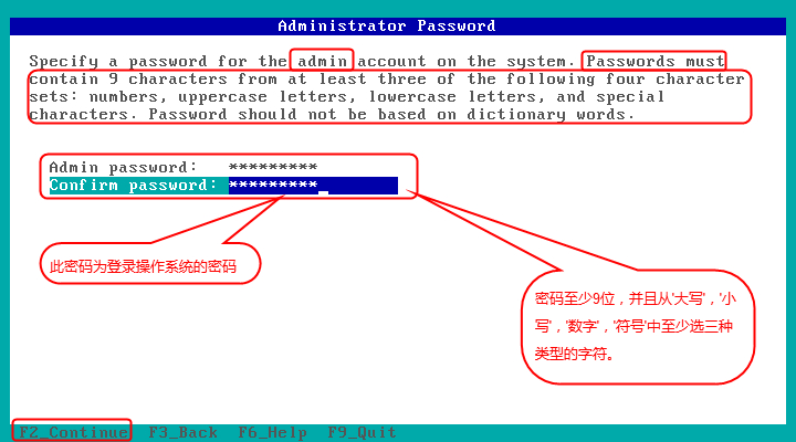 设置系统登录(管理员admin)密码,按照图片要求设置