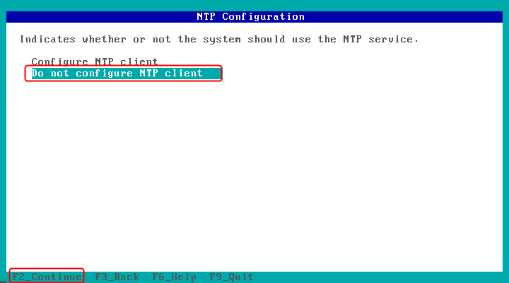 由于环境中无NTP,此处不配置NTP,F2下一步。
