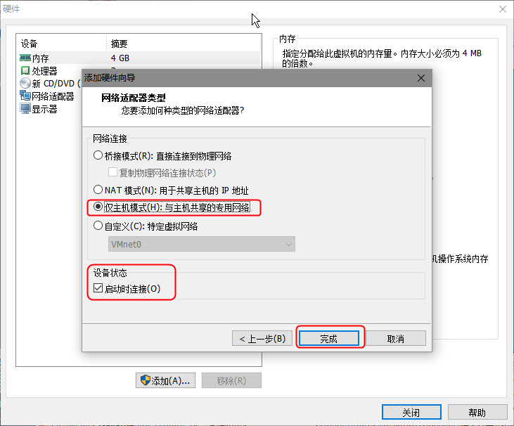 选择第二个网卡的模式为仅主机