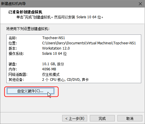 不要急着点完成,选择自定义硬件