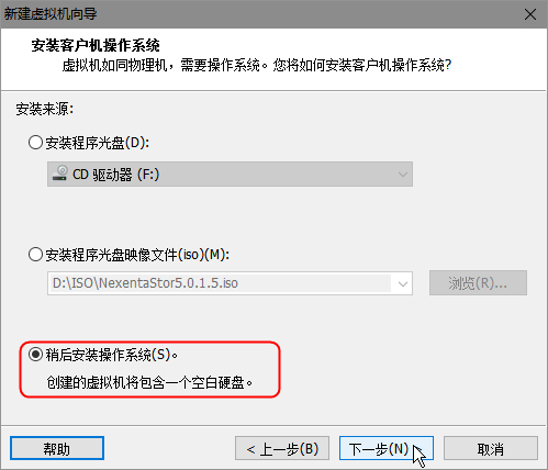 选择‘稍后安装操作系统’,下一步