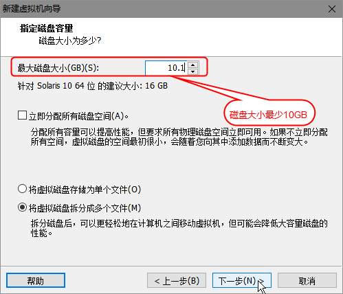 磁盘大小务必大于10GB