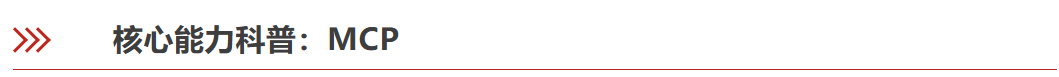 上文之所以数据翔实、内容丰富,在于引入了专业搜索金融研报的MCP(Model Context Protocol)服务。MCP是 AI 世界里的“通用连接协议”,它提供了统一的协议和结构,让不同智能体以同一种“语言”调用和交换工具与数据。